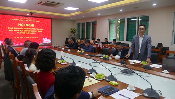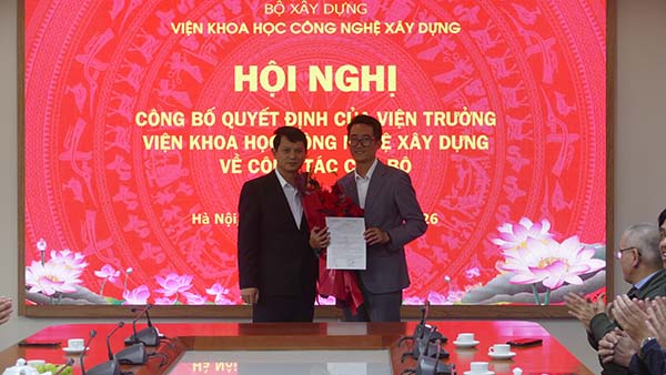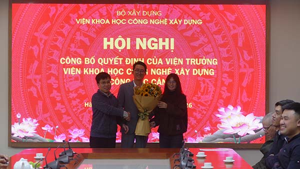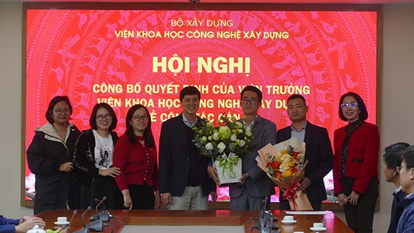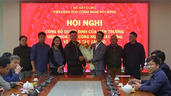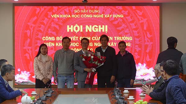 Đại diện Viện KHCN Xây dựng, Lãnh đạo phòng Tổ chức - Hành chính công bố các quyết định số 235/QĐ-VKH ngày 03 tháng 02 năm 2026 của Viện trưởng Viện KHCN Xây dựng về việc bổ nhiệm có thời hạn ông Phạm Anh Tuấn Tiến sĩ kỹ thuật, Trưởng phòng thuộc Viện Chuyên ngành Kết cấu công trình xây dựng giữ chức vụ Phó Giám đốc Viện chuyên ngành Kết cấu công trình xây dựng, Viện KHCN Xây dựng.