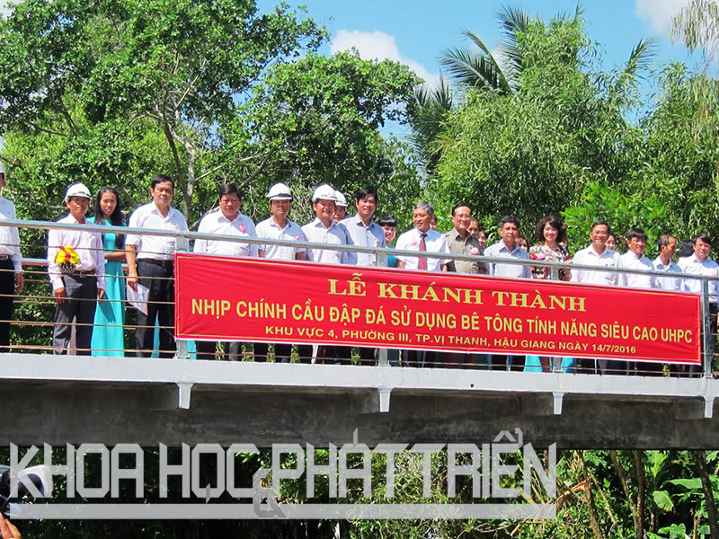 Cây cầu tại phường 3 thành phố Vị Thanh, Hậu Giang được UBND tỉnh giao cho Sở Khoa học và Công nghệ (KH&CN) làm chủ đầu tư, Viện KHCN Xây dựng- Bộ Xây dựng là đơn vị thiết kế và chế tạo phiến dầm cầu bằng bê tông tính năng siêu cao, Công ty TNHH Xây dựng Đông Hải thi công.