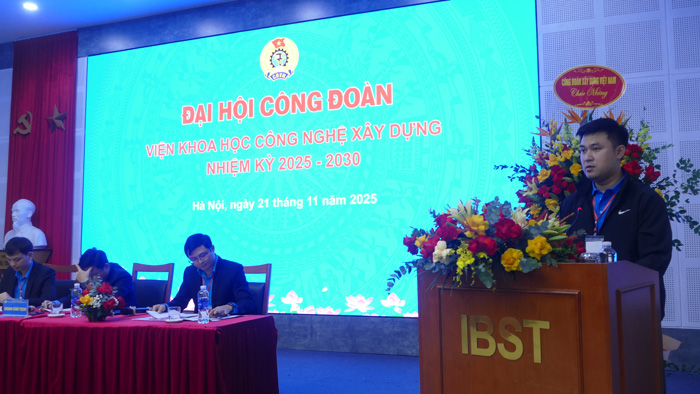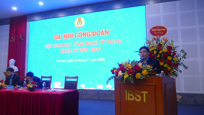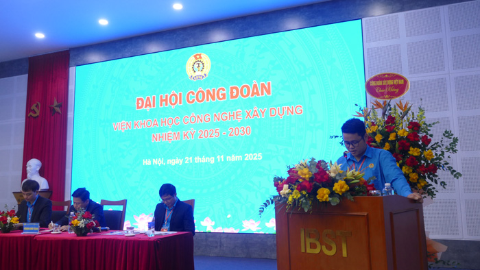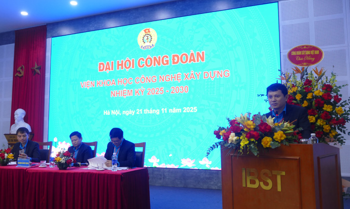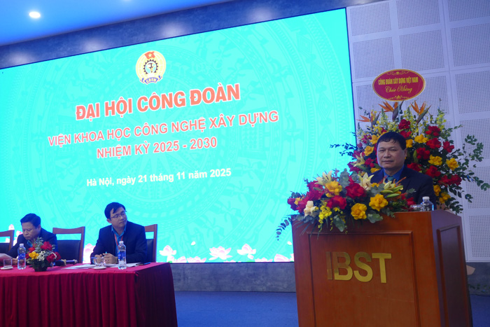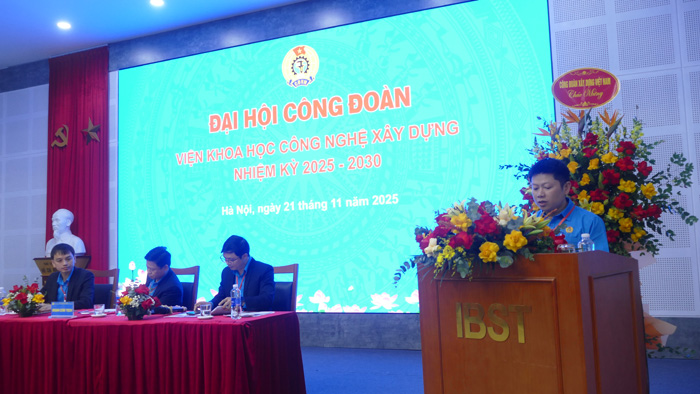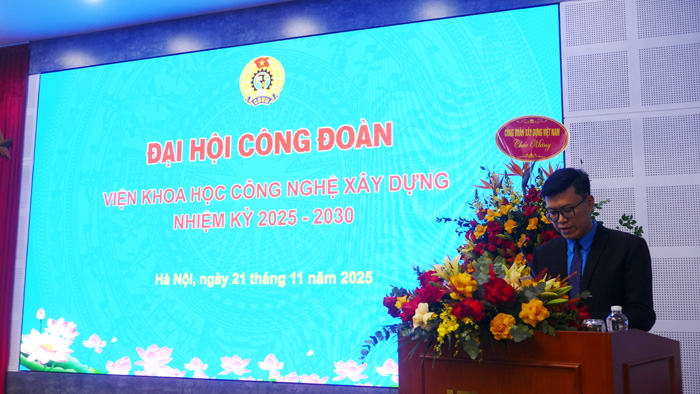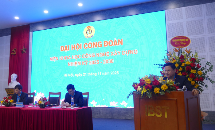 Ngày 21/11/2025, tại Hà Nội, được sự chấp thuận của Công đoàn xây dựng Việt Nam, sự đồng ý của Đảng ủy, Lãnh đạo Viện, Công đoàn Viện Khoa học công nghệ xây dựng đã long trọng tổ chức Đại hội đại biểu Công đoàn nhiệm kỳ 2025-2030. Đến dự và chỉ đạo Đại hội có đồng chí Nguyễn Thanh Tùng, Ủy viên BCH Tổng liên đoàn, Phó Chủ tịch thường trực Công đoàn xây dựng Việt Nam; đại diện các ban ngành thuộc Công đoàn xây dựng Việt Nam; đại diện Công đoàn các đơn vị: Viện Vật liệu xây dựng, Viện Kinh tế Xây dựng, Viện Kiên trúc Quốc gia, Viện Quy hoạch đô thị và nông thông quốc gia. Về phía Viện Khoa học công nghệ xây dựng có đồng chí Nguyễn Hồng Hải, Bí thư Đảng ủy, Viện trưởng, Lãnh đạo Viện, Ban chấp hành Công đoàn và 120 đại biểu đại diện cho 683 đoàn viên công đoàn thuộc 21 tổ Công đoàn tham dự.