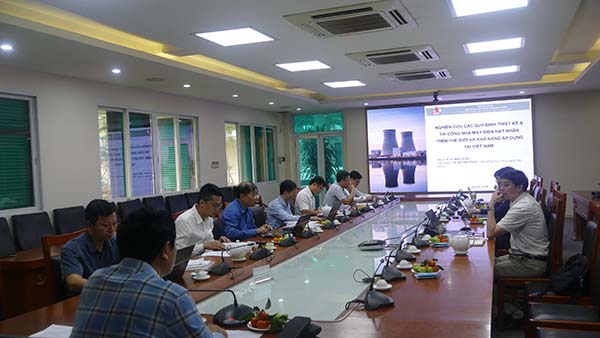 Thay mặt nhóm đề tài, ThS. Nguyễn Hoàng Dương trình bày tóm tắt các nội dung nghiên cứu về các quy định thiết kế, thi công công trình nhà máy điện hạt nhân trên thế giới và khả năng áp dụng tại Việt Nam. Các nội dung nghiên cứu gồm: Tổng quan chung về nhà máy điện hạt nhân và công nghệ lò phản ứng; Hệ tiêu chuẩn thiết kế nhà máy điện hạt nhân; Thiết kế kháng chấn nhà máy điện hạt nhân; Tiêu chuẩn thi công và nghiệm thu nhà máy điện hạt nhân; Kết luận chung, bài học kinh nghiệm và đánh giá khả năng áp dụng tại Việt Nam. Trong quá trình công nghiệp hoá, đô thị hoá và phát triển kinh tế - xã hội tại các quốc gia đang phát triển đã làm cho nhu cầu điện năng tăng trưởng với tốc độ cao, trong khi các nguồn năng lượng hoá thạch bộc lộ rõ hạn chế về trữ lượng và tác động tiêu cực đến môi trường. Do đó, điện hạt nhân được nhiều quốc gia xem là một trong những giải pháp chiến lược nhằm đảm bảo an ninh năng lượng dài hạn, cung cấp nguồn điện nền ổn định, công suất lớn và phát thải carbon thấp, hướng đến cam kết trung hoà carbon vào giữa thế kỷ 21. Việt Nam có tốc độ tăng trưởng nhu cầu điện năng cao và đang từng bước thực hiện chiến lược chuyển dịch năng lượng. Việc nghiên cứu phát triển điện hạt nhân đòi hỏi sự chuẩn bị kỹ lưỡng về thể chế, nguồn nhân lực và đặc biệt là cơ sở khoa học – kỹ thuật cho thiết kế, xây dựng nhà máy điện hạt nhân.